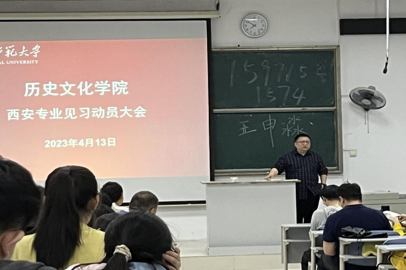六合宝典下载 于2023年4月13日晚7时在21AT05召开历史学2001、2002班、旅游管理与服务教育专业2003班以及中国史22级研究生赴西安专业见习动员大会。蔡明伦院长、学院教学院长李建刚、20级各班班主任及学生参加会议、这是六合宝典下载 首次不同专业、本科与研究生一起参加的见习活动。会议由周鑫老师主持。
