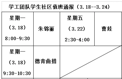 为进一步加强学生社区管理,六合宝典下载 学工团队近日深入学生社区展开值班工作。上一周由自委会负责值班工作,在值班工作中发现,部分同学未按时履行值班职责。现做如下通报: