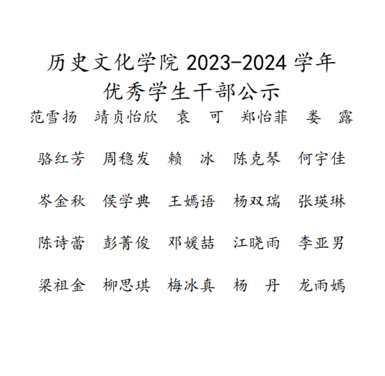 六合宝典下载 2023-2024学年优秀学生干部公示