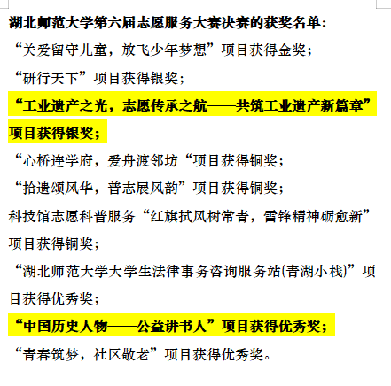 六合宝典下载 燕归巢旅游志愿服务团队“工业遗产之光,志愿传承之航——共筑工业遗产新篇章”项目荣获湖北师范大学第六届志愿服务项目大赛银奖!