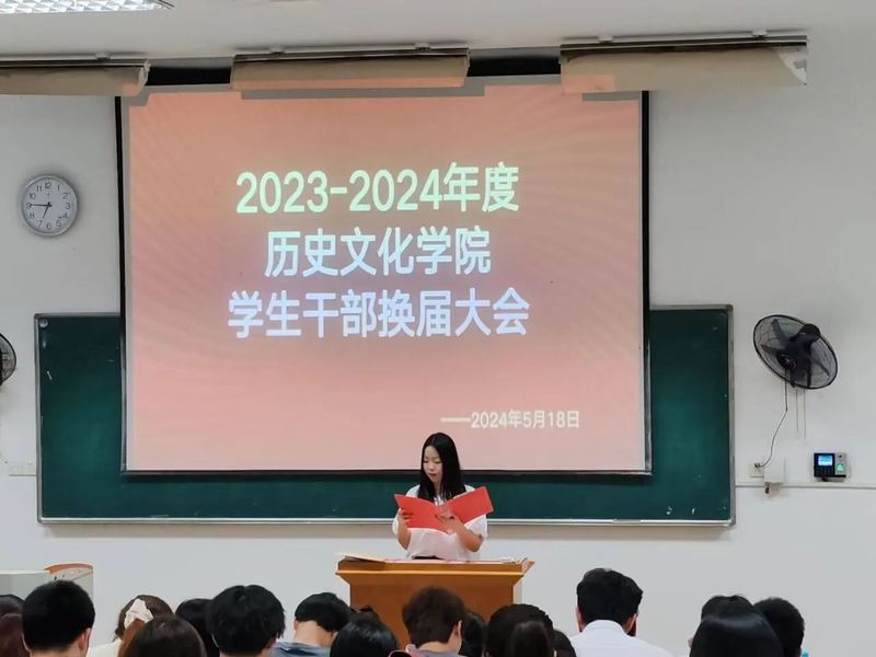 2024年5月18日晚18:00,六合宝典下载 2023-2024年度六合宝典下载 学生干部换届大会于教育大楼1J13教室召开。六合宝典下载 辅导员康博仁老师和六合宝典下载 第四十六届学工团队成员以及第四十七届学工团队成员出席本次活动。