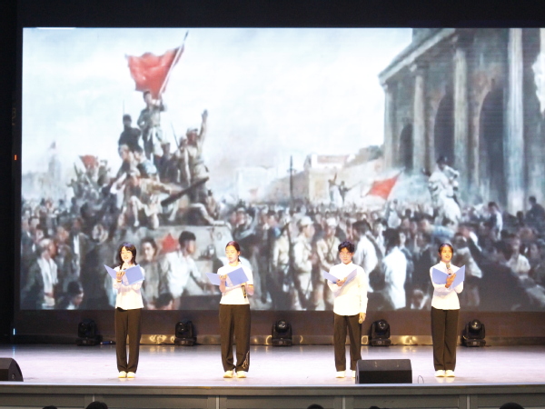 教育科学学院学生代表带来的红色诗歌诗朗诵《不朽》,用深情的语调致敬先烈。