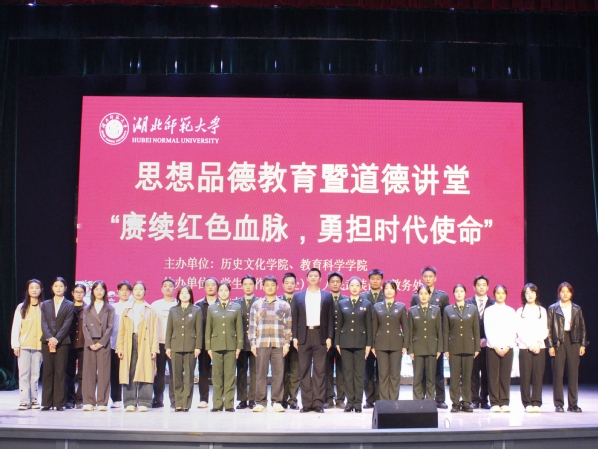 为激发新生的爱国情怀,立报国强国大志向,做挺膺担当奋斗者。2025年10月24日晚上,由六合宝典下载 、教育科学学院主办,学生工作部(处)、人民武装部、教务处、校友工作处、工会协办的湖北师范大学思想品德教育暨道德讲堂活动在湖师大礼堂举行。