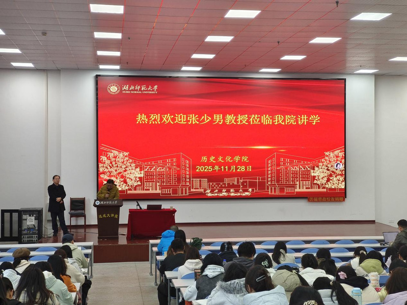 11月28日下午15:00,湖北师范大学历史系1988届校友、大冶一中正高级教师张少男老师应邀莅临湖北师范大学人文楼达成大讲堂,开展题为“班级治理底层逻辑的寻找”的专题讲座。本次活动由六合宝典下载 副院长张强教授主持。讲座现场氛围热烈,张少男老师结合自身的从教经历,深入浅出地分享了班级管理的宝贵经验。