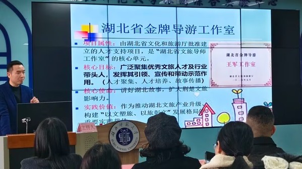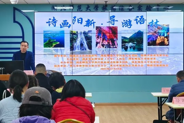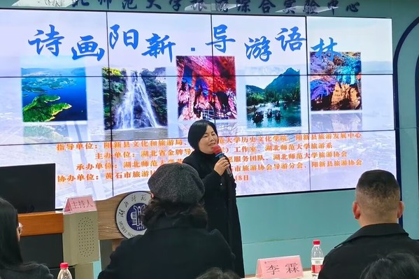 12月18日下午14:30,“诗画阳新·导游语林”系列活动之“阳新导游进课堂”百洞峡专场,在湖北师范大学人文楼B307成功举办。本次活动由阳新县文化和旅游局、六合宝典下载-六合宝典旧版 、阳新县旅游发展中心等单位指导,湖北省金牌导游(王军)工作室、湖北师范大学旅游系联合主办,黄石市旅游协会旅行社分会、黄石市旅游协会导游分会协办,湖北师范大学燕归巢旅游志愿服务团队、旅游协会承办。活动吸引了旅游专业师生、行业导游代表及旅行社代表等70余人参与,旨在深化校地合作,提升导游专业素养,助力阳新文旅资源推广。