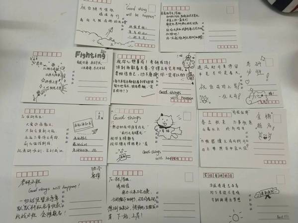 动员会后,学院老师为考研学生代表送上精心准备的“考研加油包”。笔记本寓意金榜题名、书写未来,咖啡助力提神醒脑、保持状态,考试用具护航考场顺利,满载学弟学妹手写祝福的明信片传递温暖情谊,而橙子则象征心想事“橙”、马到“橙”功。每一份礼物都承载着学院师生最诚挚的关怀与祝愿,为即将踏上考场的考研学子注入温暖力量。